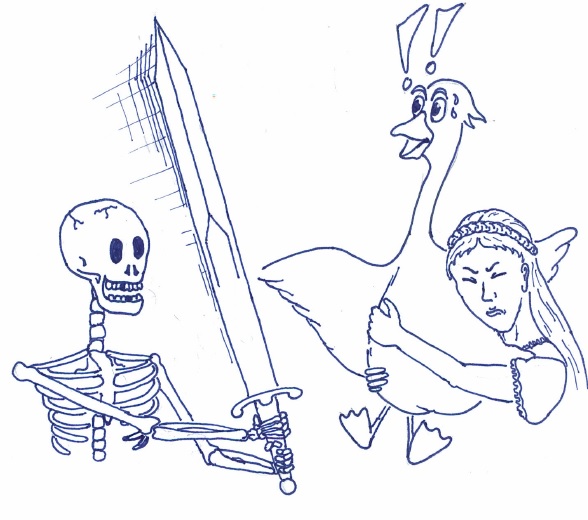 WIthin the tomb they found mostly curses and traps. Some ended up disfigured by the events, and the dwarf remains buried below the stone door at the entrance to this day. But they pushed on - past magic mouths, past the corpse of one of the last daring adventurers, into the depths. They fought skeletons. And here the goose revealed itself, in the hour of need, as the farm girl named Clio distracted the undead minions to save one or two comrades from certain death. Thus the Fellowship of the Goose was born, especially since the duck proved to be too independent to be thrown into any old fountain or pool after another, and hence did not make a good mascot.