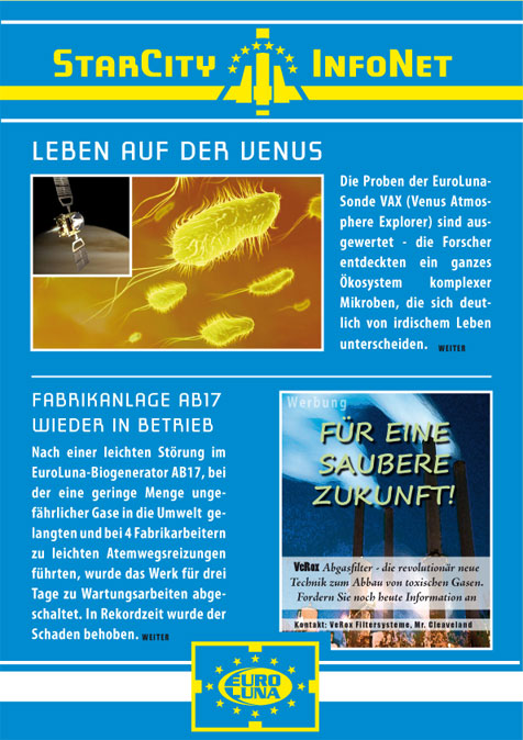 Intern sieht es so aus, dass die intelligenten Fürze (Pardon, ich meinte: die hochentwickelten Plasmawesen) von der Venus einen Vertrag mit Cleaveland geschlossen haben, in dem er ihnen Nahrung garantiert, sofern sie sich an gewisse Regeln des Zusammenlebens mit den Menschen halten (keine blau anlaufenden Leute mehr - kein Verbreiten von Panik und Aktivitätsbeschränkung auf die von Mr. Cleaveland zugeteilten Fabrikanlagen (getarnt als Abgas-Filteranlagen). Und EuroLuna und der Rest der Welt haben keine Ahnung, dass es in wenigen Jahren von Venusianern hier nur so wimmeln wird. :)